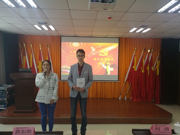 活動共有七項議程,會議開始,全體黨員共唱國歌,然后在黨總支何書記的領誓下,重溫入黨誓詞。隨后,觀看學習新聞聯(lián)播視頻《習近平在紀念五四運動100周年大會上的講話》和《關于在全區(qū)開展“支部強堡壘 黨員爭先鋒”活動實施方案》。之后,為5月份入黨的黨員過政治生日,何書記代表公司黨總支向黨員張夢珠、郝朝文贈送了書籍。過“政治生日”的兩名黨員分別分享了入黨以來的感思感想,表示將在今后學習、工作中發(fā)揮黨員的先鋒模范帶頭作用。