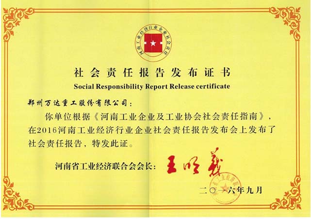 熱烈祝賀鄭州萬達(dá)重工股份有限公司獲得“河南行業(yè)企業(yè)發(fā)布社會責(zé)任報告示范單位”榮譽(yù)稱