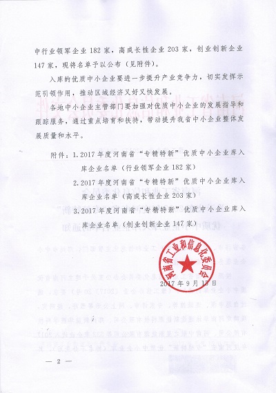 按照《河南省工業(yè)和信息化委員會辦公室關(guān)于建立河南省優(yōu)質(zhì)中小企業(yè)庫的通知》(豫工信辦企業(yè)【2017】20號)的要求,經(jīng)過自愿申報、逐級推薦、專家評審、網(wǎng)上公示等程序,鄭州萬達重工股份有限公司成果入選河南省“專精特新”優(yōu)質(zhì)中小企業(yè)庫,被認定為行業(yè)領軍企業(yè)。