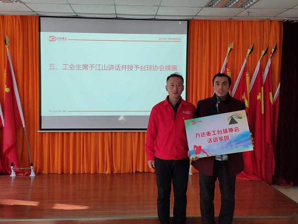最后工會主席于江山做總結(jié)講話并授予臺球協(xié)會會長“活動家園”牌匾,于主席分別對“協(xié)會”和“工會”的區(qū)別,為什么成立協(xié)會?為什么協(xié)會是由工會領(lǐng)導(dǎo)?為什么協(xié)會能得到員工的認(rèn)可、領(lǐng)導(dǎo)的重視等方面進(jìn)行闡述,并指出,臺球協(xié)會的成立開創(chuàng)了萬達(dá)重工企業(yè)文化方面協(xié)會成立的先河,同時萬達(dá)重工臺球協(xié)會也是航空港區(qū)眾多企業(yè)中成立的第一家臺球協(xié)會,其協(xié)會的成立填補(bǔ)了港區(qū)企業(yè)臺球協(xié)會方面的空白。于主席最后強(qiáng)調(diào),協(xié)會成立后會有更多的豐富活動,會有更多的展示機(jī)會,臺球家園會越辦越好!會議結(jié)束后,公司領(lǐng)導(dǎo)與臺球協(xié)會全體會員在綜合辦公樓前合影留念。