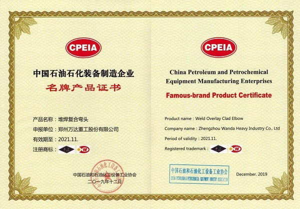 為更好落實“中國制造2025”的發(fā)展戰(zhàn)略,培育企業(yè)具有科技創(chuàng)新水平的名牌產(chǎn)品,根據(jù)《中國石油石化裝備制造服務(wù)行業(yè)名牌產(chǎn)品推薦辦法》規(guī)定,經(jīng)過企業(yè)自愿申報、行業(yè)部門初審、專家評審等環(huán)節(jié),萬達重工 “益工”牌“堆焊復合彎頭”和“益工牌鋼制三通”等2類產(chǎn)品被中國石油和石油化工設(shè)備工業(yè)協(xié)會評定為中國石油石化裝備制造企業(yè)名牌產(chǎn)品并頒發(fā)證書。