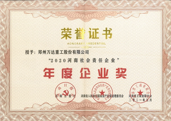 熱烈祝賀鄭州萬(wàn)達(dá)重工股份有限公司榮獲“2020河南社會(huì)責(zé)任企業(yè)”年度企業(yè)獎(jiǎng)