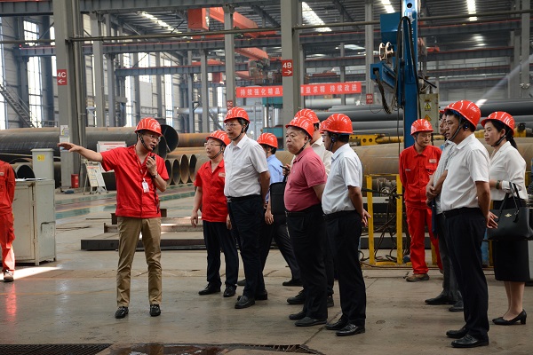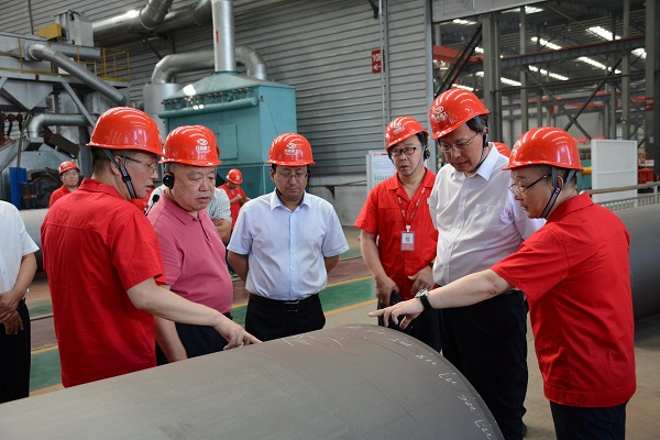 張會長一行先后深入堆焊智能制造車間、彎制車間、機(jī)加工、物流倉儲等生產(chǎn)車間進(jìn)行了參觀,實(shí)地查看了公司先進(jìn)的生產(chǎn)設(shè)備、繁忙而有序的生產(chǎn)環(huán)境,股份公司總經(jīng)理張付峰分別就公司生產(chǎn)設(shè)備、技術(shù)及生產(chǎn)能力情況向調(diào)研組一行進(jìn)行了詳細(xì)講解,調(diào)研組一行對萬達(dá)重工現(xiàn)代化的管理理念,一流的生產(chǎn)能力表示贊賞。