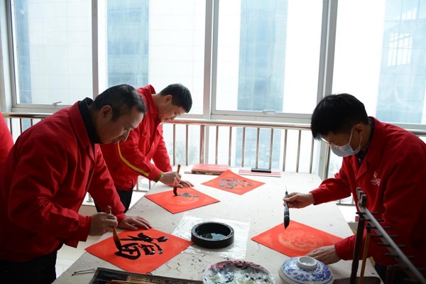 從1月21日起至1月25日每天中午,都有來自各個崗位的員工書法愛好者現(xiàn)場潑墨揮毫,寫下一副副寄托著美好祝福的春聯(lián)、福字作品?;顒蝇F(xiàn)場翰墨飄香,洋溢著歡樂祥和的喜慶氛圍,為即將到來的春節(jié)增添了濃濃的年味兒。