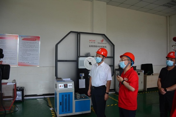 高義一行首先參觀了萬達(dá)重工技術(shù)中心(CNAS實(shí)驗(yàn)室),股份公司董事長(zhǎng)、書記何清就實(shí)驗(yàn)室的高端檢驗(yàn)檢測(cè)設(shè)備、檢測(cè)能力及產(chǎn)品研發(fā)能力、專利數(shù)量、國(guó)家標(biāo)準(zhǔn)、國(guó)際標(biāo)準(zhǔn)的參編情況等進(jìn)行了匯報(bào)。