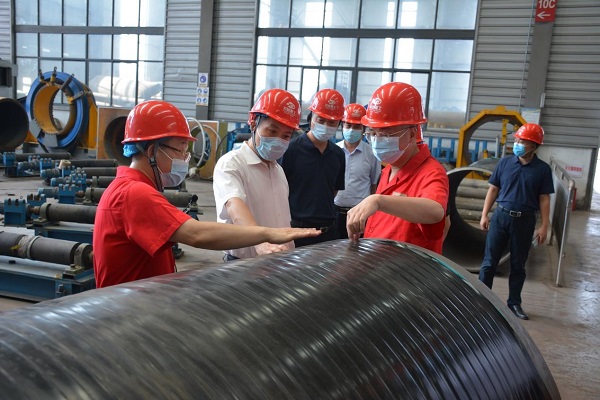 隨后,高義一行深入萬達(dá)重工堆焊智能制造車間、彎制車間等聯(lián)合工房進(jìn)行參觀指導(dǎo),實(shí)地了解公司的生產(chǎn)運(yùn)營(yíng)情況,股份公司董事長(zhǎng)、書記何清就公司核心用戶、科技創(chuàng)新、生產(chǎn)裝備、技術(shù)及生產(chǎn)能力、產(chǎn)品市場(chǎng)等情況向調(diào)研組作了詳細(xì)匯報(bào),高副市長(zhǎng)認(rèn)真聽取了產(chǎn)業(yè)發(fā)展情況匯報(bào),了解企業(yè)發(fā)展過程中遇到的難題,聽取了對(duì)進(jìn)一步改善營(yíng)商環(huán)境的建議。