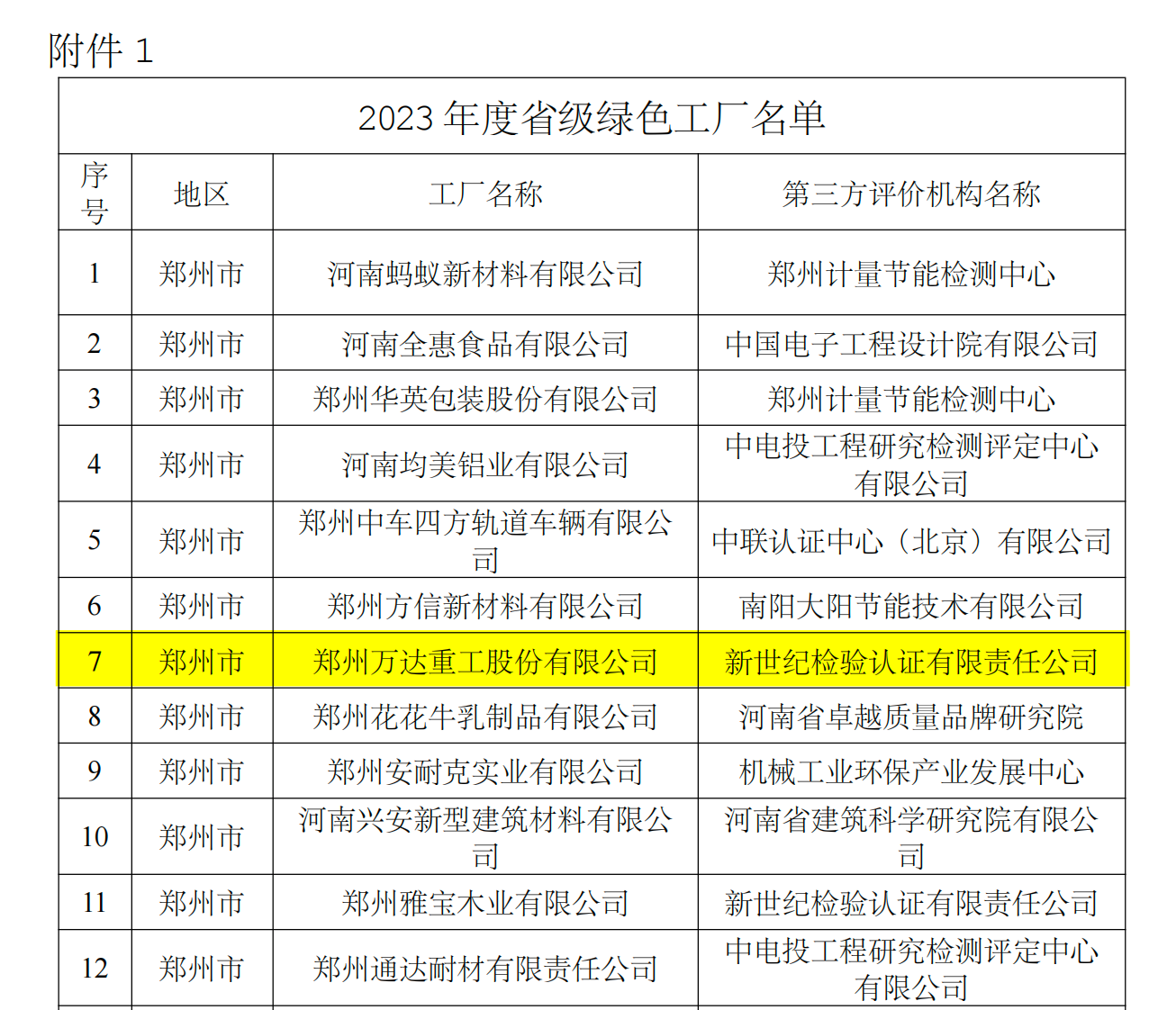 熱烈祝賀鄭州萬(wàn)達(dá)重工股份有限公司被認(rèn)定為“河南省綠色工廠”
