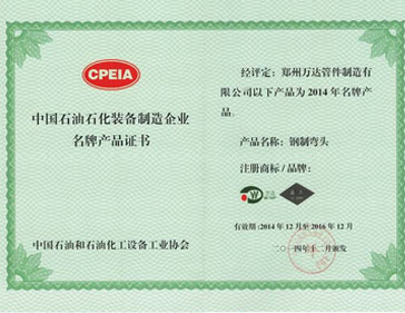 我司“益工”牌“鋼制彎頭”被評為“2014年中國石油石化裝備制造企業(yè)名牌產(chǎn)品”