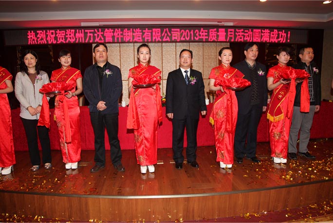 歌聲嘹亮、旗幟飄揚(yáng)、群情激昂,2013年4月3日上午九點(diǎn),鄭州萬達(dá)管件制造有限公司隆重召開了“2013年公司質(zhì)量月活動(dòng)宣誓大會(huì)”。鄭州市質(zhì)量技術(shù)監(jiān)督局尚副局長、肖處長、綜合保稅區(qū)(航空港區(qū))質(zhì)量技術(shù)監(jiān)督局王局長應(yīng)邀作為嘉賓出席了此次萬達(dá)質(zhì)量月啟動(dòng)大會(huì)。