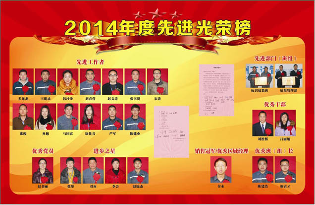2014年全年工作中,二十三位同志和兩個優(yōu)秀班組表現(xiàn)突出,踐行公司“價值、實干、實效”的工作理念,認真工作,愛崗敬業(yè),始終保持旺盛的精神風(fēng)貌和飽滿的工作激情,在各自工作崗位樹立了榜樣,被評為公司的先進代表。