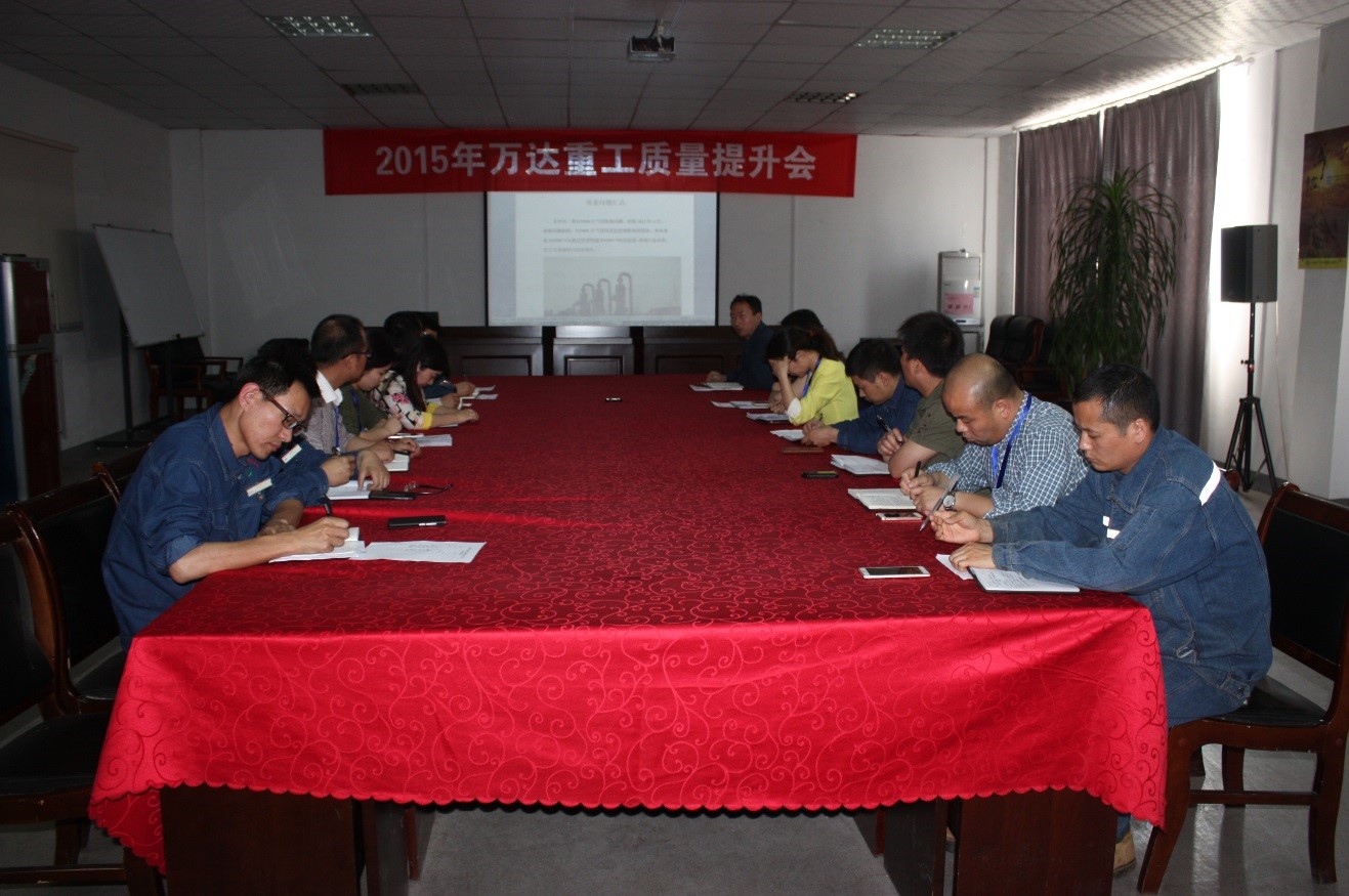 4月29號(hào)下午,作為公司質(zhì)量月活動(dòng)的一個(gè)專項(xiàng)內(nèi)容,各部門在行政區(qū)會(huì)議室召開“2015年萬達(dá)重工質(zhì)量提升會(huì)”。會(huì)議對(duì)公司三年來典型工作質(zhì)量問題進(jìn)行了梳理、歸納,客觀分析影響工作質(zhì)量的原因。各部門負(fù)責(zé)人都進(jìn)行了發(fā)言,著重對(duì)所負(fù)責(zé)部門工作質(zhì)量進(jìn)行了剖析及本部門在質(zhì)量月是如何提升崗位工作質(zhì)量的。大家各抒己見,建言獻(xiàn)策,共同維護(hù)“質(zhì)量興、萬達(dá)興”的公司質(zhì)量文化。