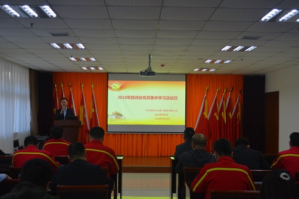 2018年4月18日下午,鄭州萬達(dá)重工股份有限公司黨總支在集團(tuán)綜合樓二樓黨建基地開展了2018年度4月份“黨員集中活動日”活動。黨總支全體黨員、入黨積極分子、入黨申請人共有40余人參加了此次活動。