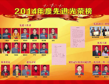 2016/01/28 354 2014年全年工作中,二十三位同志和兩個優(yōu)秀班組表現(xiàn)突出,踐行公司價值、實干、實效的工作理念,認真工作,愛崗敬業(yè),始終保持旺盛的精神風(fēng)貌和飽滿的工作激情,在各自工作崗位樹立了榜樣,被評為公司的先進代表。