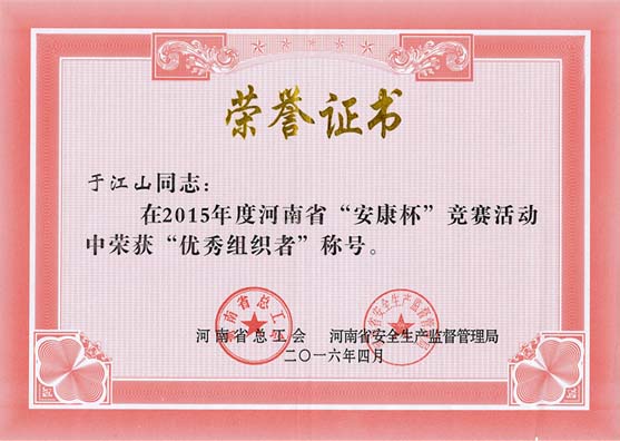 8月16日,河南省總工會與河南省安全生產監(jiān)督管理局對2015年度“安康杯”競賽先進集體和個人進行通報表彰,鄭州萬達重工股份有限公司繼2014年度獲得河南省“安康杯”后,再次榮獲2015年度省級“安康杯”競賽先進單位稱號,股份公司工會主席于江山榮獲河南省“安康杯”競賽活動“優(yōu)秀組織者”榮譽稱號。