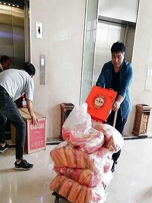 今天下午15:30,在萬達(dá)重工行政樓一樓大廳,人力行政中心為全體員工發(fā)放了載滿祝福的中秋禮品:每人一盒七星伴月月餅,祝福著萬達(dá)家人闔家團(tuán)圓、幸福美滿;一桶多力葵花籽食用油、一袋大米,希望萬達(dá)家人家庭和諧、幸福美滿。以部門為單位進(jìn)行領(lǐng)取,大家有的手提、有的肩扛、有的一起合力抬,萬達(dá)人個個臉上洋溢著喜悅之情,現(xiàn)場呈現(xiàn)出一片喜氣洋洋、熱鬧非凡的景象。