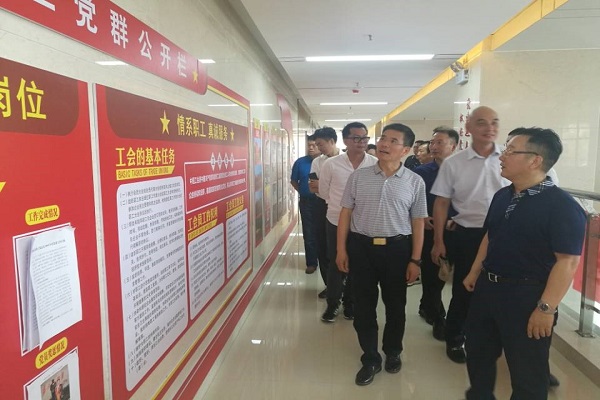 2019 年6月13日下午,航空港實(shí)驗(yàn)區(qū)駐區(qū)政協(xié)委員及規(guī)模以上企業(yè)負(fù)責(zé)人28人在航空港實(shí)驗(yàn)區(qū)黨群工作部部長季玉成的帶領(lǐng)下蒞臨萬達(dá)重工參觀座談。股份公司董事長、書記何清和工會主席于江山等人予以熱情接待。