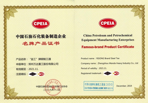 為更好落實“中國制造2025”的發(fā)展戰(zhàn)略,培育企業(yè)具有科技創(chuàng)新水平的名牌產(chǎn)品,根據(jù)《中國石油石化裝備制造服務(wù)行業(yè)名牌產(chǎn)品推薦辦法》規(guī)定,經(jīng)過企業(yè)自愿申報、行業(yè)部門初審、專家評審等環(huán)節(jié),萬達重工 “益工”牌“堆焊復合彎頭”和“益工牌鋼制三通”等2類產(chǎn)品被中國石油和石油化工設(shè)備工業(yè)協(xié)會評定為中國石油石化裝備制造企業(yè)名牌產(chǎn)品并頒發(fā)證書。