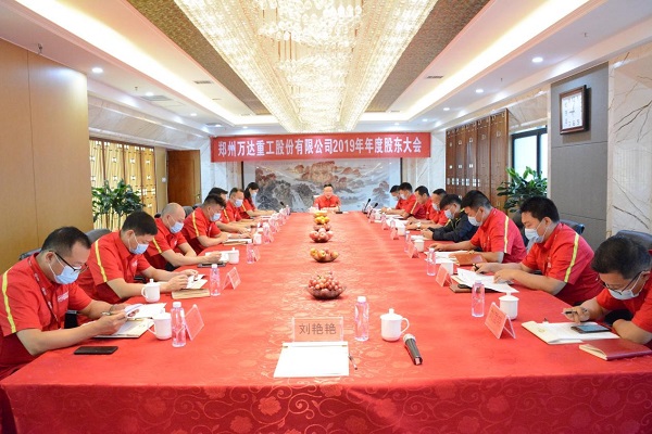 2020年6月16日上午九點(diǎn)整,鄭州萬達(dá)重工股份有限公司2019年度股東大會在公司行政樓8樓貴賓室召開。公司董事長、書記何清,董事、總經(jīng)理張付峰,監(jiān)事會主席于江山與各股東、董事、監(jiān)事參加會議。