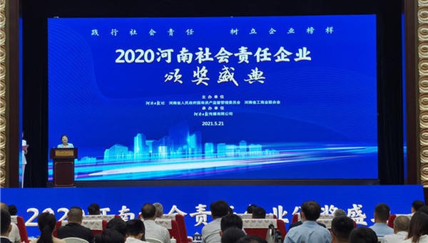 2021年5月21日下午,由河南日?qǐng)?bào)社、河南省國(guó)資委、河南省工商業(yè)聯(lián)合會(huì)聯(lián)合主辦,河南日?qǐng)?bào)傳媒有限公司承辦的“2020河南社會(huì)責(zé)任企業(yè)推選活動(dòng)頒獎(jiǎng)典禮”在鄭州黃河迎賓館隆重舉行。