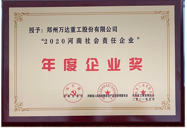熱烈祝賀鄭州萬(wàn)達(dá)重工股份有限公司榮獲“2020河南社會(huì)責(zé)任企業(yè)”年度企業(yè)獎(jiǎng)