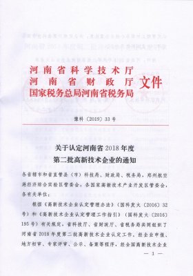 喜訊:鄭州萬達重工股份有限公司被認定為河南2018年度高新技術(shù)企業(yè)