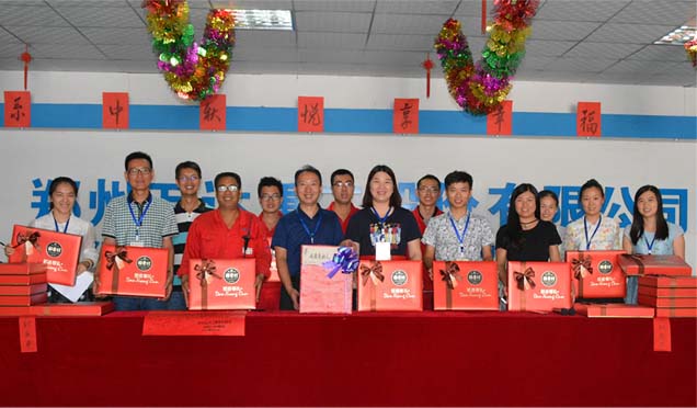 2016/09/14 774 又是一年中秋佳節(jié)至,又是一年萬(wàn)達(dá)幸福日,和大多數(shù)迎接中秋佳節(jié)的人們一樣,今年的萬(wàn)達(dá)是佳節(jié)至,情意濃。公司特意置辦了節(jié)日禮品,祝福全體萬(wàn)達(dá)人中秋節(jié)快樂(lè),闔家歡樂(lè)! 2016年9月13日下午14:00,在股份公司行政區(qū)大廳,由股份公司行政管理部組織,股份公司、控股公司、子公司全體員工按部門(mén)有序領(lǐng)取了禮品。在禮品領(lǐng)取過(guò)程中,...