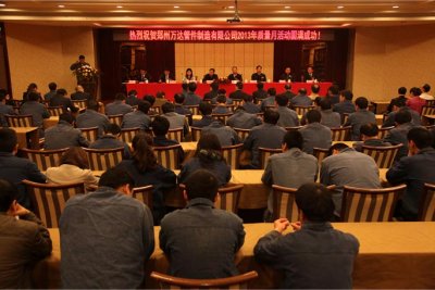 2016/03/15 567 歌聲嘹亮、旗幟飄揚(yáng)、群情激昂,2013年4月3日上午九點(diǎn),鄭州萬達(dá)管件制造有限公司隆重召開了2013年公司質(zhì)量月活動(dòng)宣誓大會(huì)。鄭州市質(zhì)量技術(shù)監(jiān)督局尚副局長、肖處長、綜合保稅區(qū)(航空港區(qū))質(zhì)量技術(shù)監(jiān)督局王局長應(yīng)邀作為嘉賓出席了此次萬達(dá)質(zhì)量月啟動(dòng)大會(huì)。 上午的啟動(dòng)大會(huì),員工統(tǒng)一了思想,統(tǒng)一了行動(dòng),對(duì)公司在市場(chǎng)競(jìng)爭(zhēng)中起到了有...